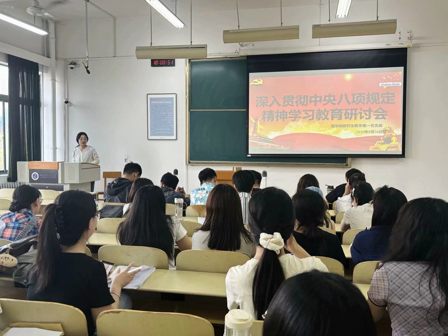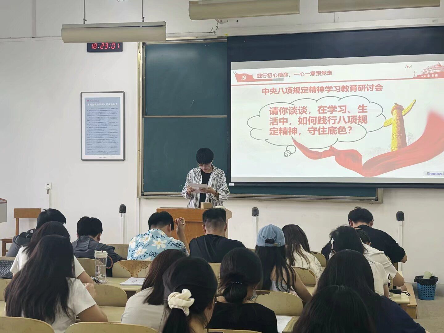 在专题讨论环节,党员们紧扣“青年党员如何在学习生活中践行八项规定精神”主题,踊跃发言。大家结合学术研究、日常活动等实际,从多个角度交流了心得体会。