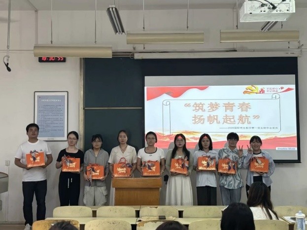 活动中,支部书记带领大家回顾校园美景照片,重温共同成长岁月。随后,毕业生党员代表依次发言,分享在校学习科研经验,强调珍惜时光、严谨治学的重要性,并寄语同学们未来实现理想、贡献社会。支部为毕业生党员精心准备了纪念品,表达关爱与祝福。活动在全体毕业生党员合影留念中圆满结束。