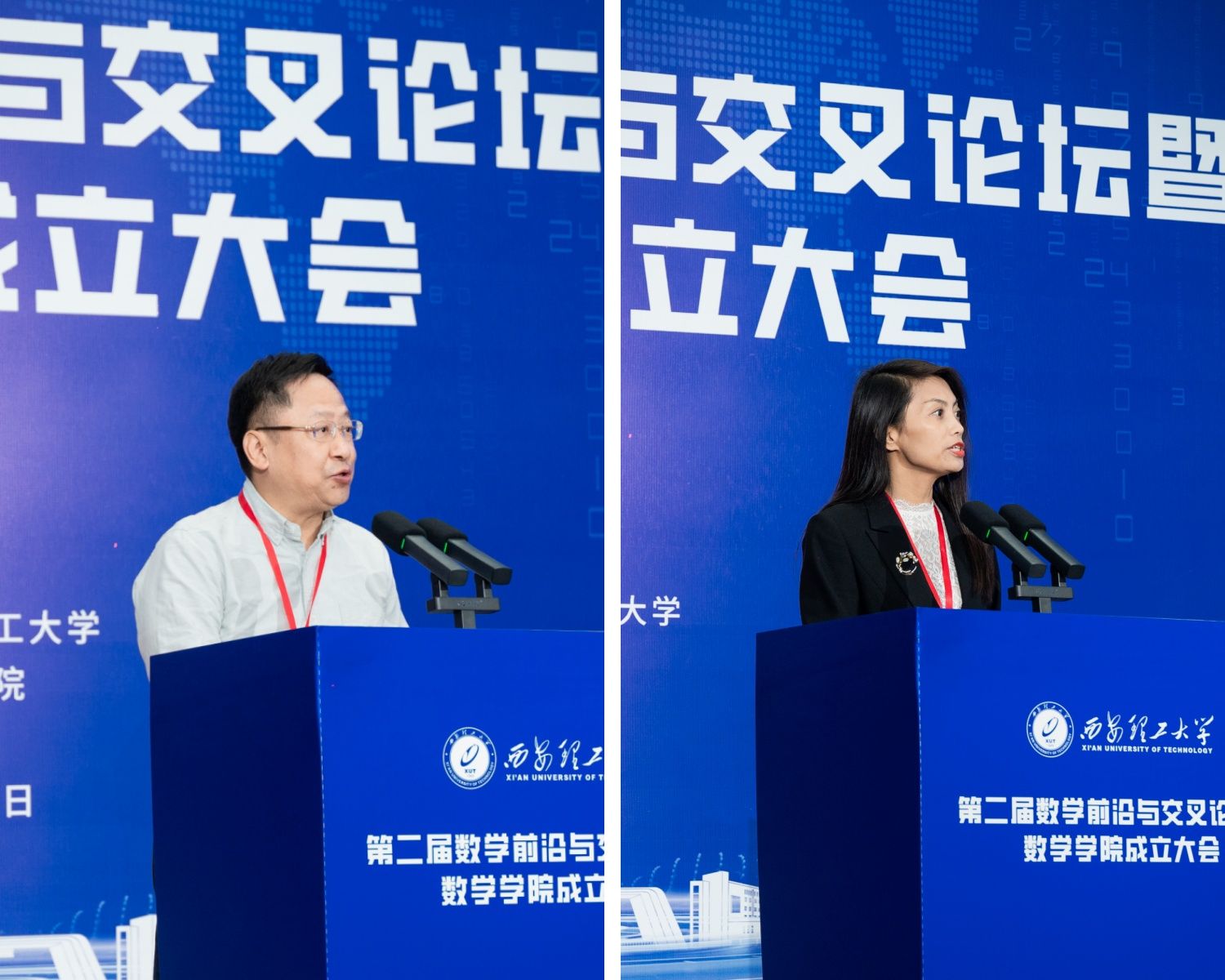 开幕式上,刘云贺、徐宗本院士等十位代表共同触亮启动柱,宣告西安理工大学数学学院正式成立。上海交通大学数学科学学院院长楼元作为省外高校代表祝贺西安理工大学数学学院成立。他从兄弟学院的角度分享了建设经验与发展期待。我校数学学院院长沈晓芹以“数往知来 守正创新”为主题作建院情况汇报。