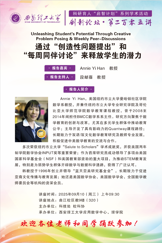 美国纽约市立大学Annie Yi Han教授学术报告通知