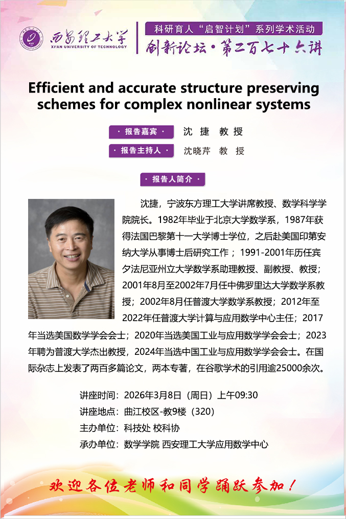 宁波东方理工大学沈捷教授学术报告通知