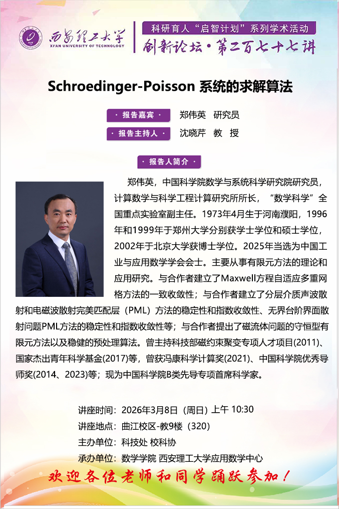 中国科学院数学与系统科学研究院郑伟英研究员学术报告通知