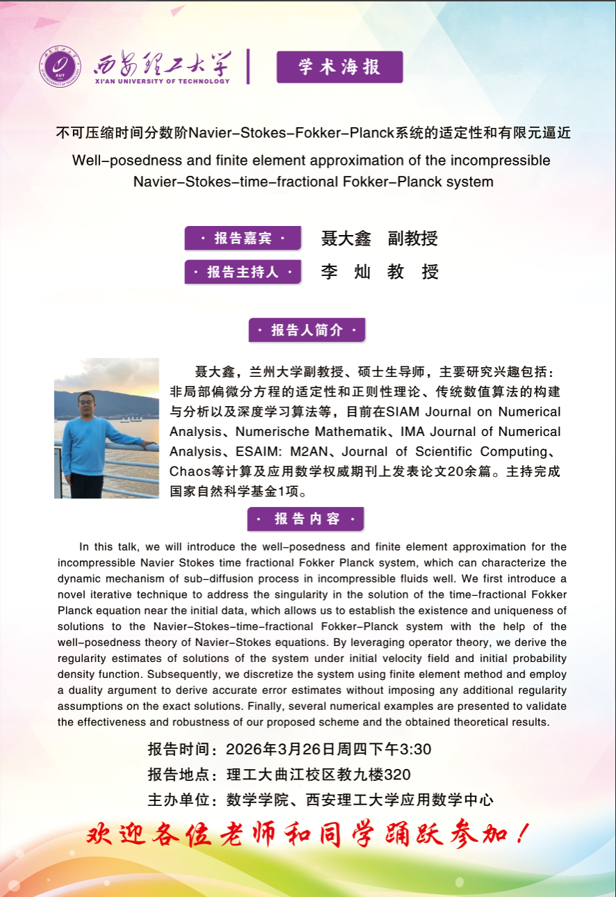 兰州大学聂大鑫副教授学术报告通知