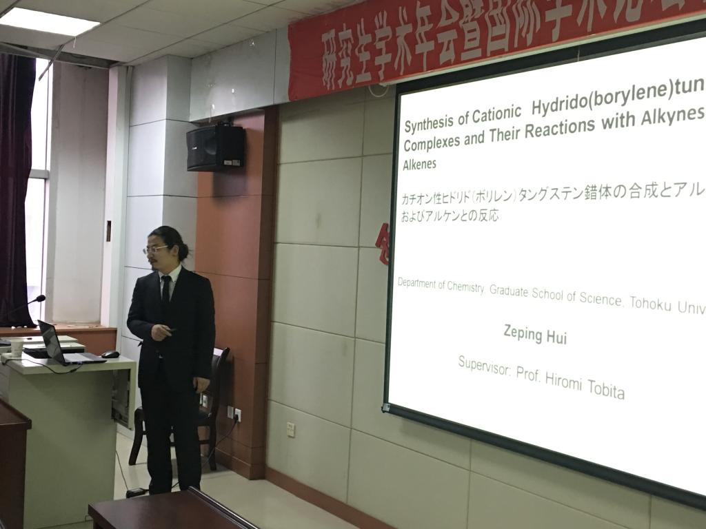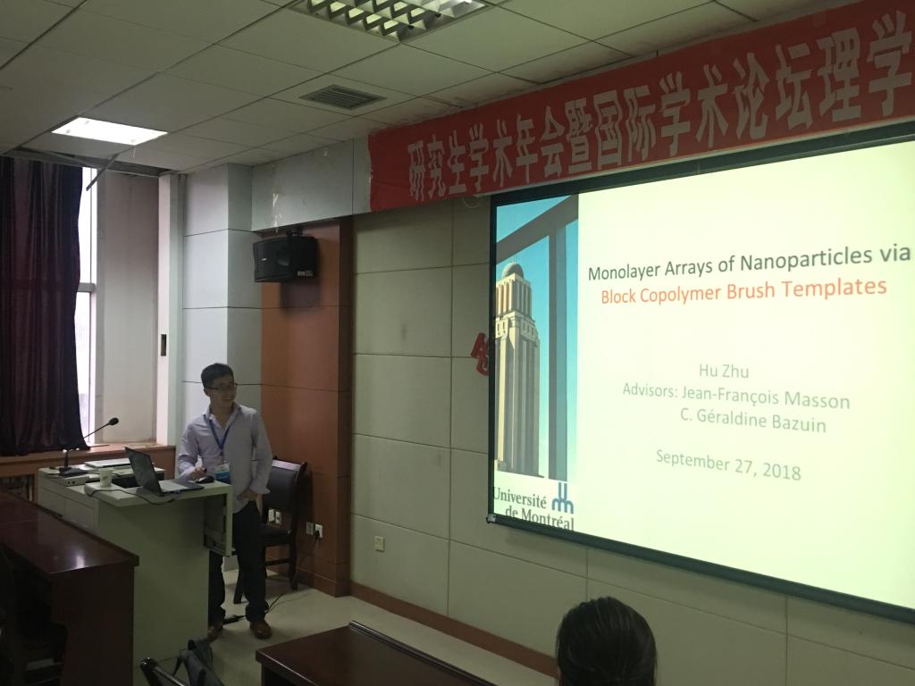 青年学者的学术报告会随后在理学院学术报告厅举办。蒙特利尔大学朱虎博士在上午场作了题为“Monolayer Arrays of Nanoparticles via Block Copolymer Brush Templates”的学术报告,日本东北大学惠泽平博士、北京大学深圳研究生院陈加利博士后在下午场分别进行了“Synthesis of Cationic Hydrido (borylene) tungsten Complexes Stabilized by N-Heterocyclic Carbene and Their Reactions with Internal Alkynes”和“高分散负载型贵金属Pd基金属催化剂的制备、表征及其加氢性能研究”的学术报告。与会老师和研究生就相关学术问题和青年学者进行了热烈的讨论。