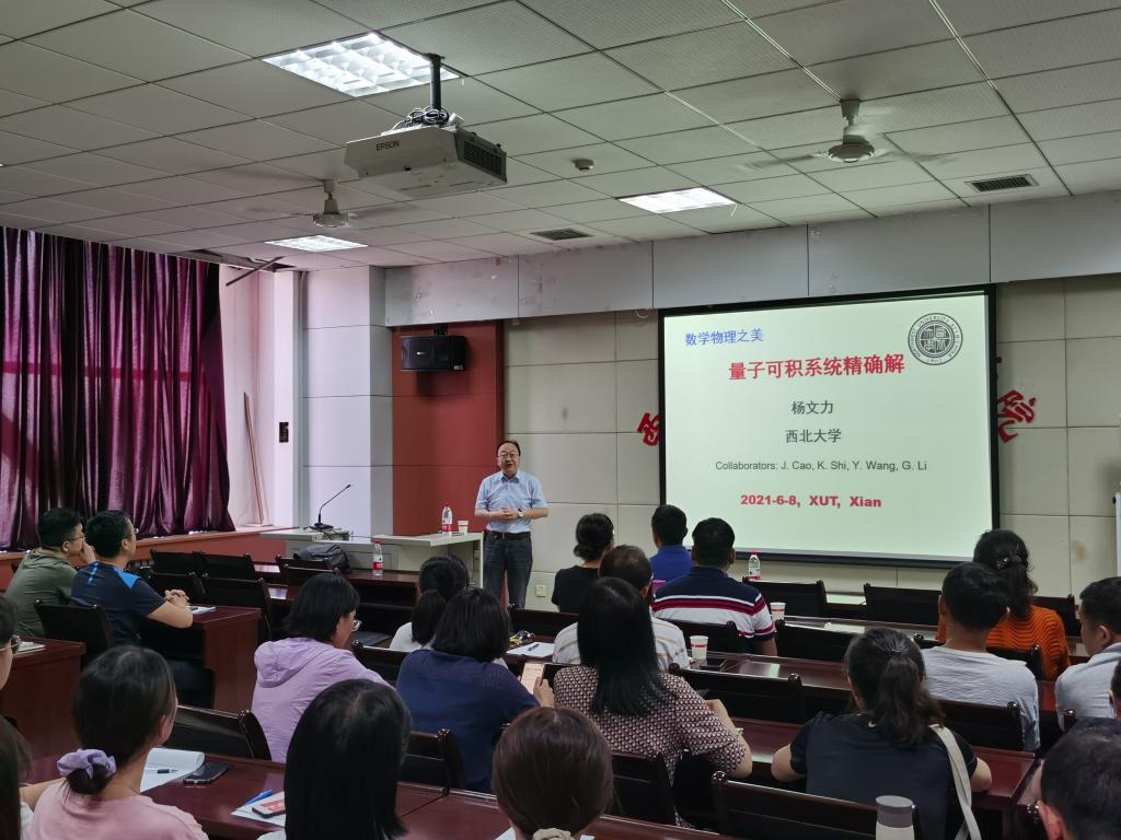 2021年6月8日,西北大学杨文力教授应邀在我校曲江校区理学院报告厅9-617为我系师生作了题为“数学物理之美——量子可积分系统的精确解”的学术报告。报告由理学院院长张显斌教授主持。