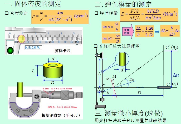 力学基本测量仪器使用及弹性模量的测定