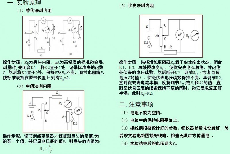 万用电表设计实验选做:表头内阻的测定