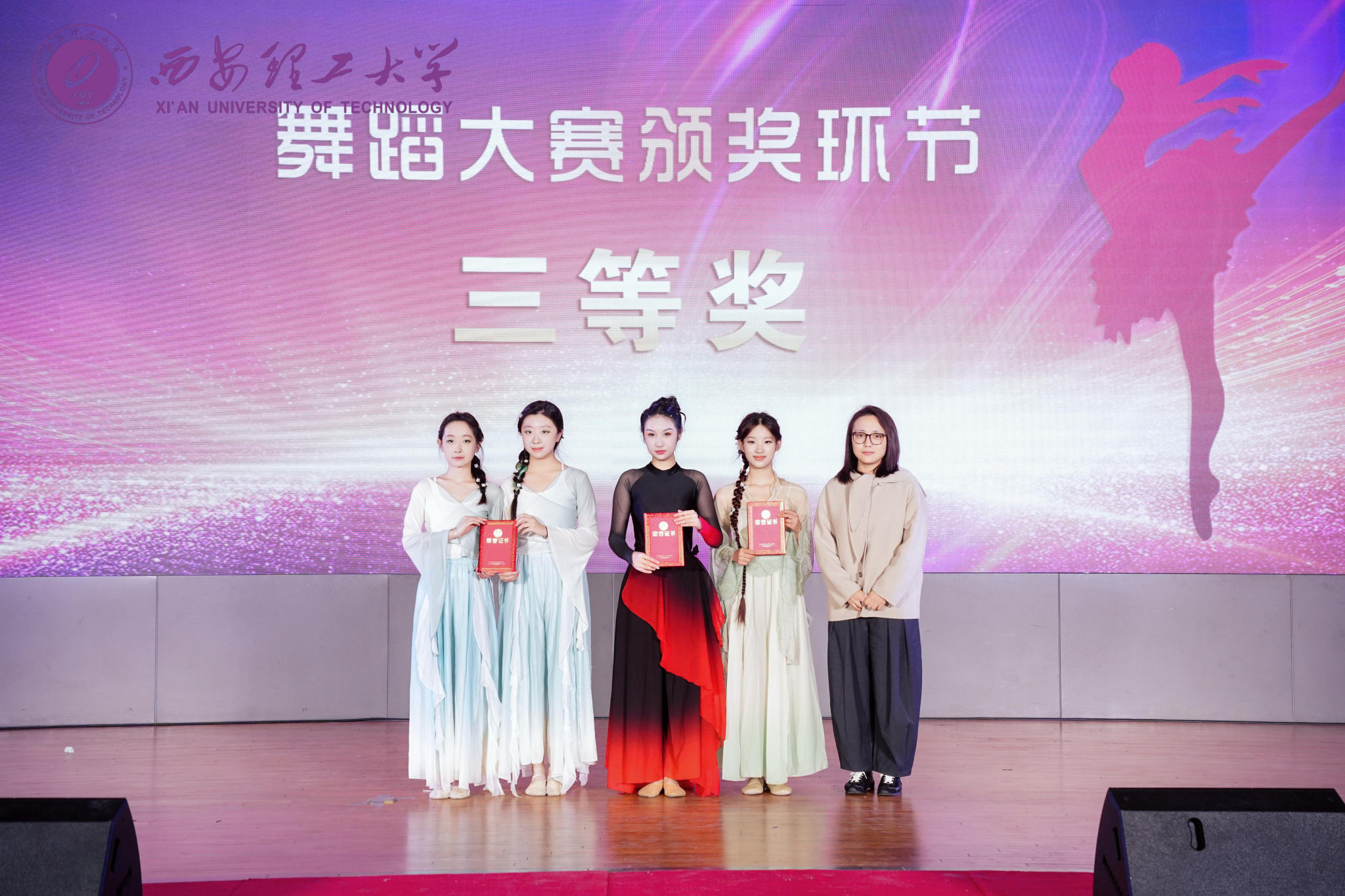11月30日,西安理工大学第二十二届校园舞蹈大赛决赛在曲江校区图书馆报告厅举行,数学学院选送的团体舞蹈作品《如梦令》和个人舞蹈作品《茶花开了》均获得三等奖。