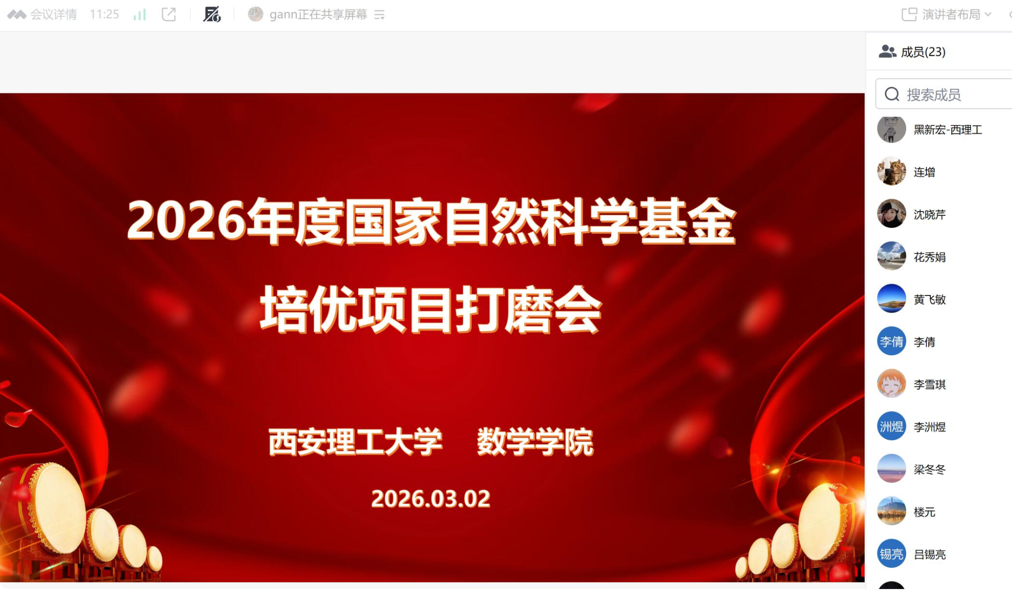 在2026年度国家自然科学基金申报冲刺的关键阶段,为进一步提升项目申报质量,数学学院于2026年3月2日以线上形式组织召开了第八轮打磨会。本次会议特邀中国科学院数学与系统科学研究院黄飞敏研究员、上海交通大学楼元教授、北京大学张磊教授、四川大学连增教授、武汉大学吕锡亮教授、西安交通大学孟德宇教授、中国科学院数学与系统科学研究院张新雨研究员、香港理工大学乔中华教授、中北大学孙桂全教授等9位知名专家对学院培优项目进行精准指导。西安理工大学党委常委、副校长黑新宏教授出席会议并致辞,会议由数学学院院长沈晓芹教授主持。