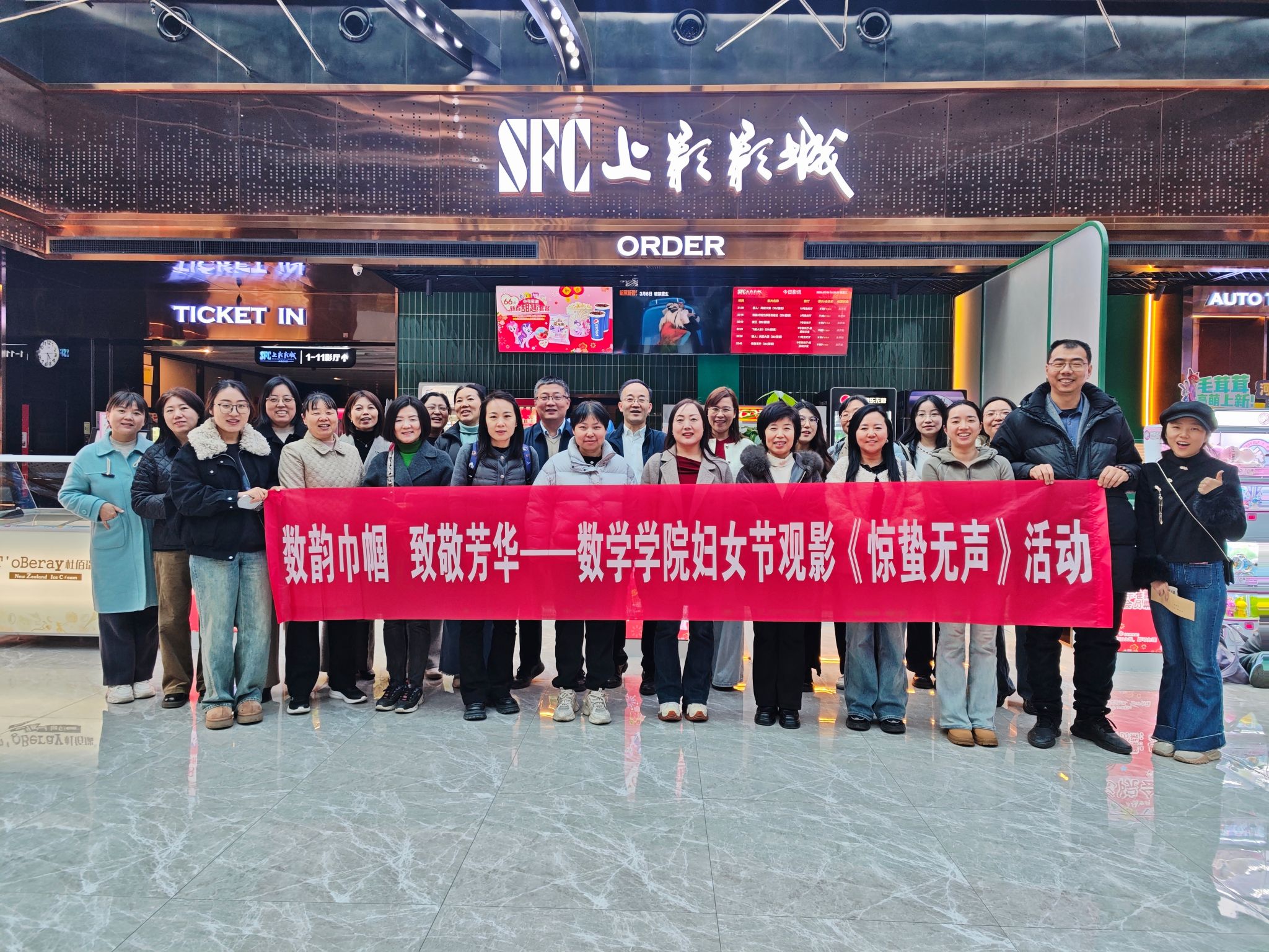 春和景明,暖意盎然,为庆祝 “三八” 国际妇女节,丰富女教职工精神文化生活,传递学院关怀与温暖,近日,数学学院组织全体女教师前往曲江龙湖上影影城,集体观看国家安全题材影片《惊蛰无声》。学院党委书记王林、工会主席童小红参加活动。