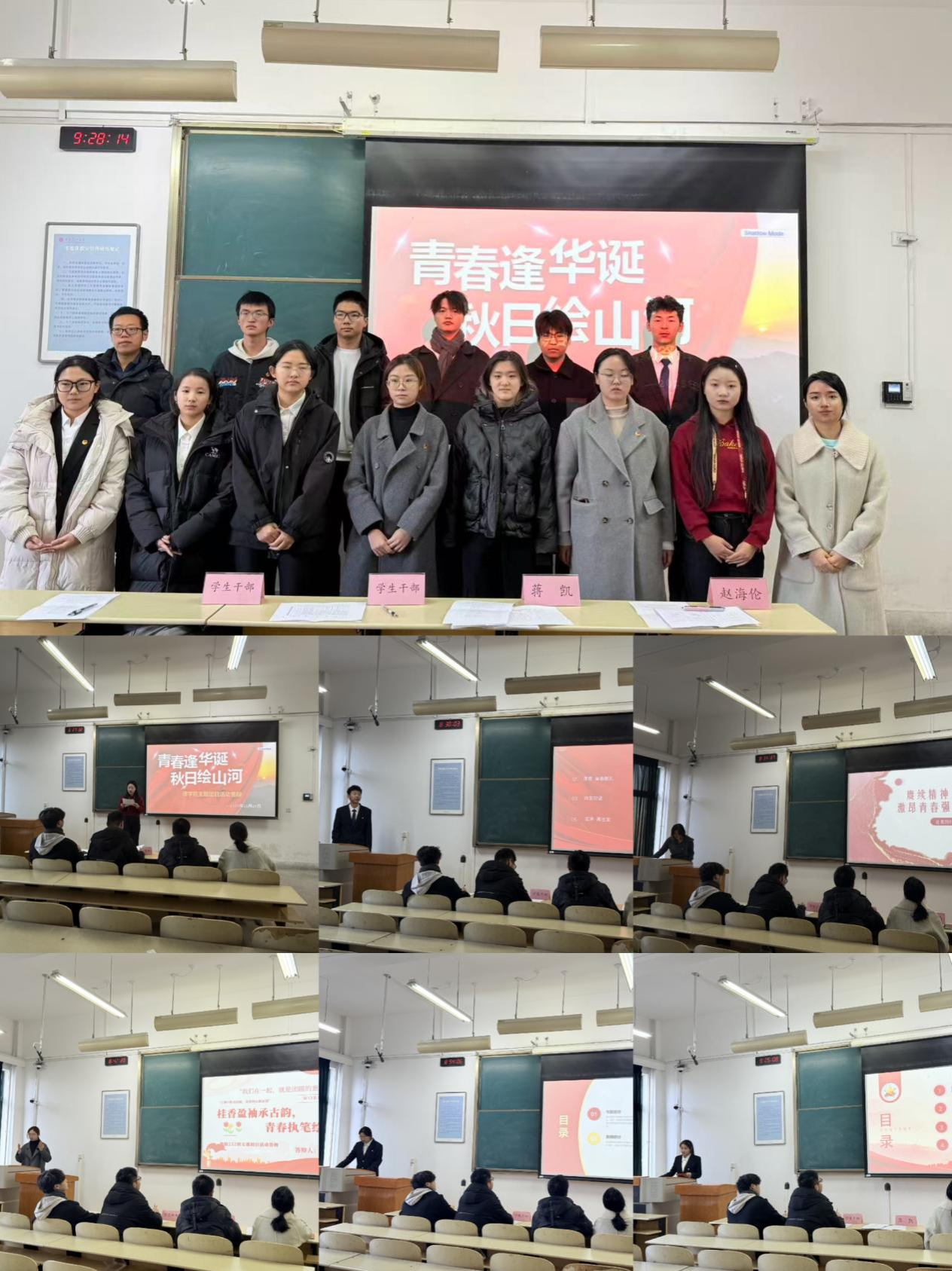 11 月 25 日,数学学院在 9-430 举办 “青春为中国式现代化挺膺担当” 主题团日活动院级答辩交流会。学院团委负责人赵海伦、2025 级本科生辅导员蒋凯、经济与管理学院团委副书记李宇、数学学院团委学生会执行主席贾子浠及组织部部长翟粒多担任评委,2025 级本科生团支部参与答辩。