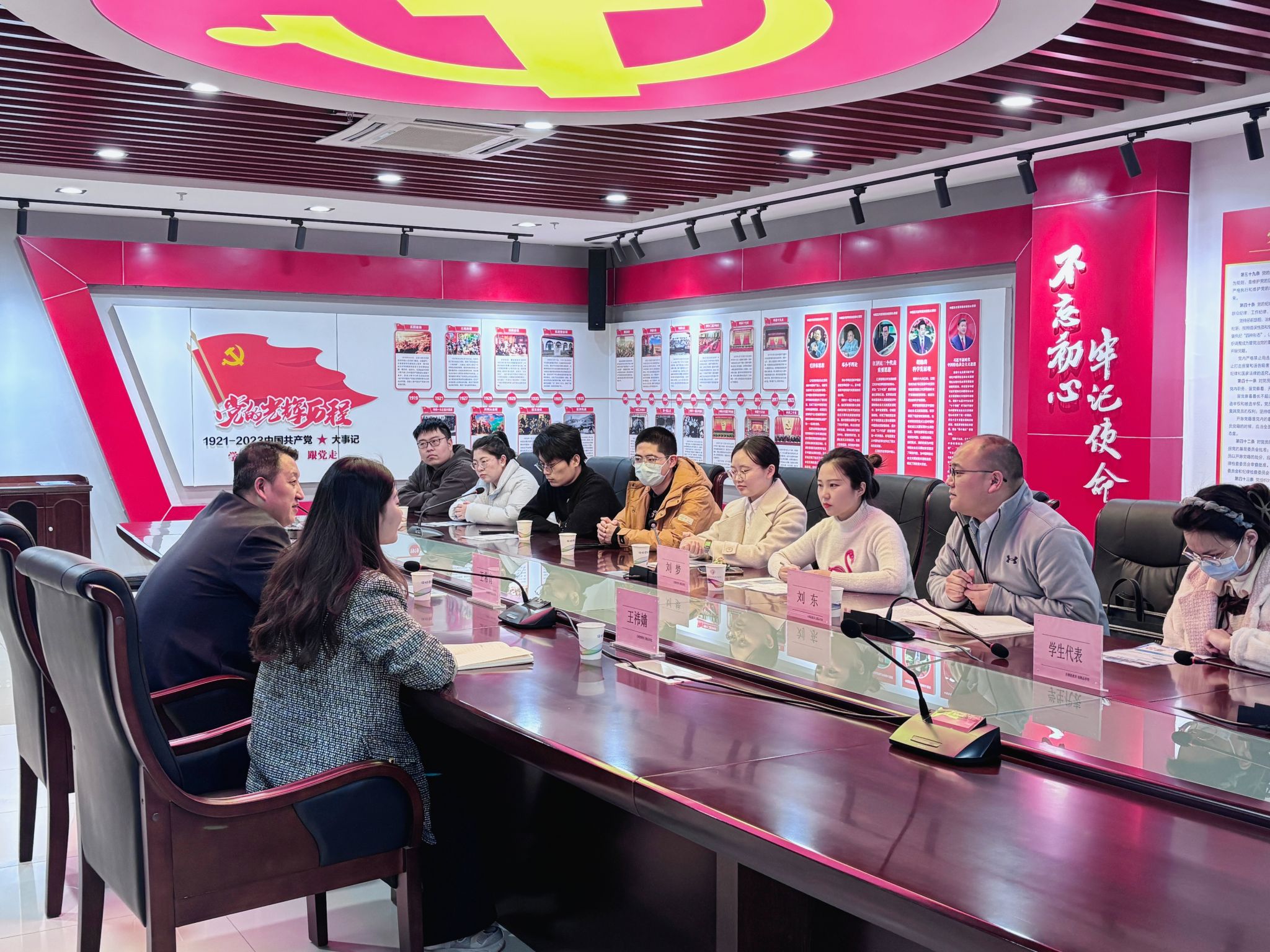 参观结束后,双方在学校会议室召开交流座谈会。王常青对学院一行表示欢迎,详细介绍了学校的办学历史、师资队伍建设及教师招聘计划,重点解读了小学、初中、高中各学段数学教师岗位的任职标准,期待与学院建立长期合作,吸纳更多优秀学子加入教师队伍。刘东详细介绍了数学学院的办学特色、人才培养体系及毕业生基本情况,重点强调了数学专业研究生理论基础扎实,具备学科竞赛优势。双方围绕人才培养适配性、专场招聘举办等议题展开深入交流。