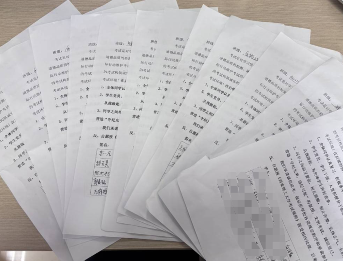 为厚植优良学风根基,强化学生诚信应考意识,营造风清气正的育人环境,近日,数学学院发挥“导师 + 辅导员”协同育人模式作用,组织全体导师、辅导员深入班级,联合开展考风学风主题教育班会,全体学生签订《诚信考试承诺书》,以精准教育与正向引导筑牢学业成长“双防线”。
