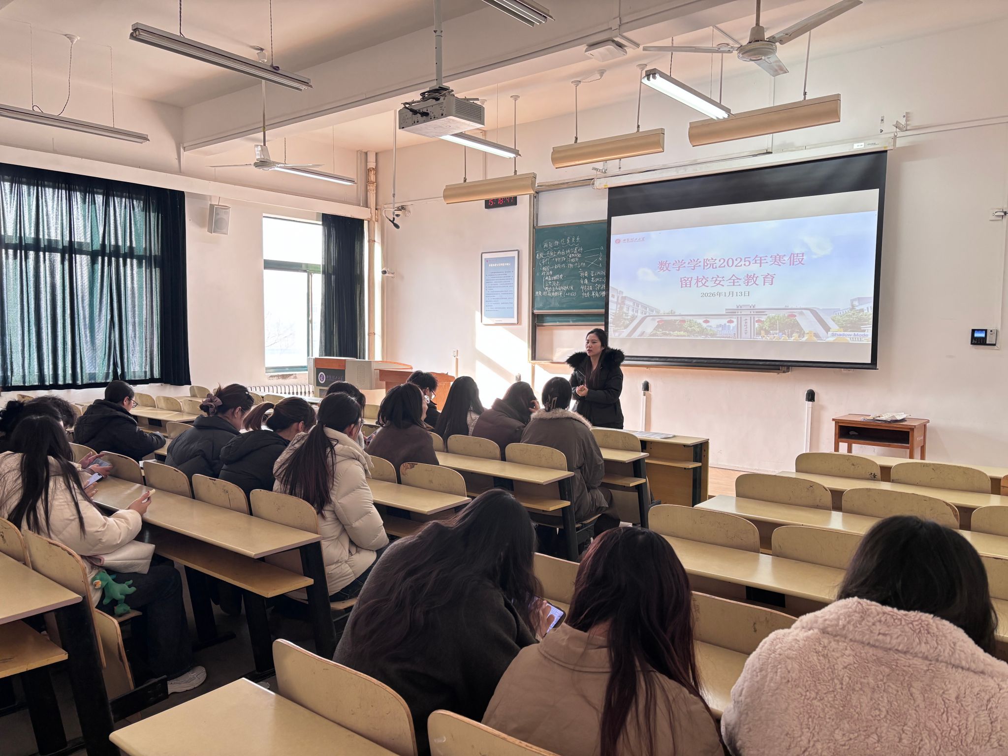 同时,学院通过开展假期安全教育班会、建立“2026年寒假留校学生工作群”、官微发布“数学学院2026年寒假安全提示”等方式,多措并举筑牢学院寒假安全稳定基石。