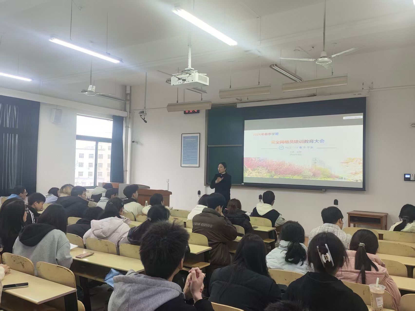 为深入贯彻落实学校安全管理工作部署,提升安全网格员队伍的业务水平,充分发挥网格员在安全隐患排查、信息传递、宣传教育中的“前沿哨兵”作用,3月1日下午,数学学院在9-430召开了2026春季学期第一次安全网格员培训会。学工办主任刘梦担任主讲,学院全体安全网格员参加了本次培训。