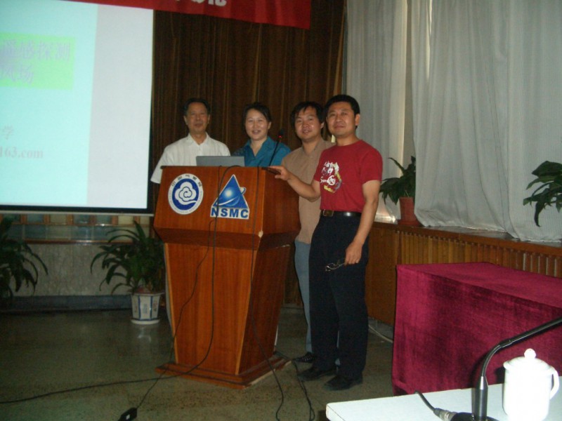 唐远河教授到国家气象局作报告:左起成员:加拿大New Brunswick大学王鼎益教授,唐远河,于涛和吕永健(国家气象局),2008年
